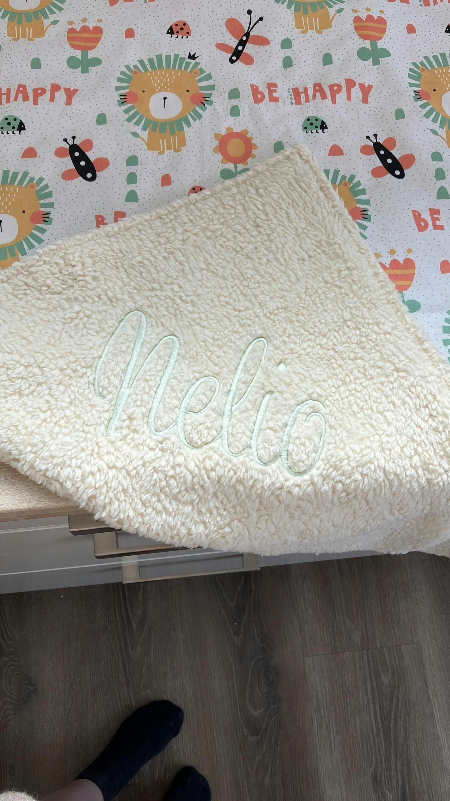 A beautiful newborn gift - a lightweight baby blanket personalized with the newborn's name ♥